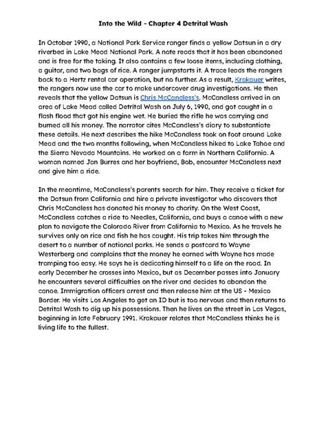 Read Online into the wild summary chapter 4 Reader